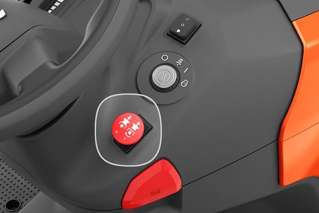 Engine features like auto choke, oil filter and twin cylinder, and robust design with cast iron front axles ensure reliable and durable performance. ROS (reverse operation system) is activated with the start key for quick access to reverse mowing, and to minimise the risk of the function being used unintentionally. There is also a brush guard to protect the front.